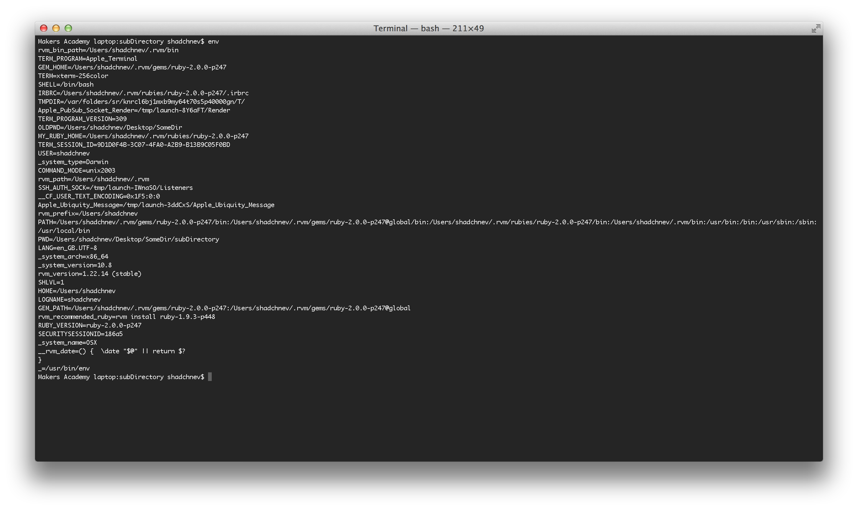 $ echo $PATH /Users/bpourian/.rvm/gems/ruby-2.0.0-p247/bin:/Users/bpourian/.rvm/gems/ruby-2.0.0-p247@global/bin:/Users/bpourian/.rvm/rubies/ruby-2.0.0-p247/bin:/Users/bpourian/.rvm/bin:/usr/bin:/bin:/usr/sbin:/sbin:/usr/local/bin